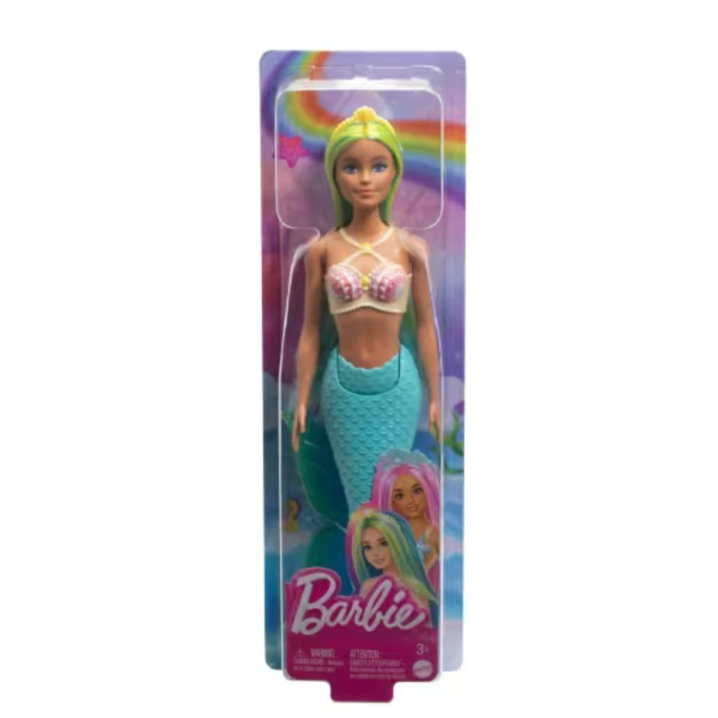 Muñeca sirena Barbie que luce un atuendo super colorido.