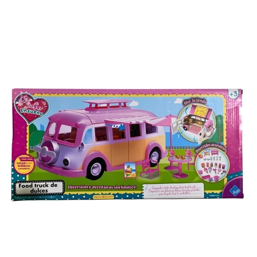 ¡Transforma la hora de jugar en una fiesta de sabores con nuestro Food Truck de Dulces! Este encantador set es ideal para disfrutar con tus muñecas favoritas. La combi colorida se despliega con un toldo vibrante y permite abrir las puertas completamente, revelando un interior diseñado para que tus muñecas pasen momentos inolvidables.