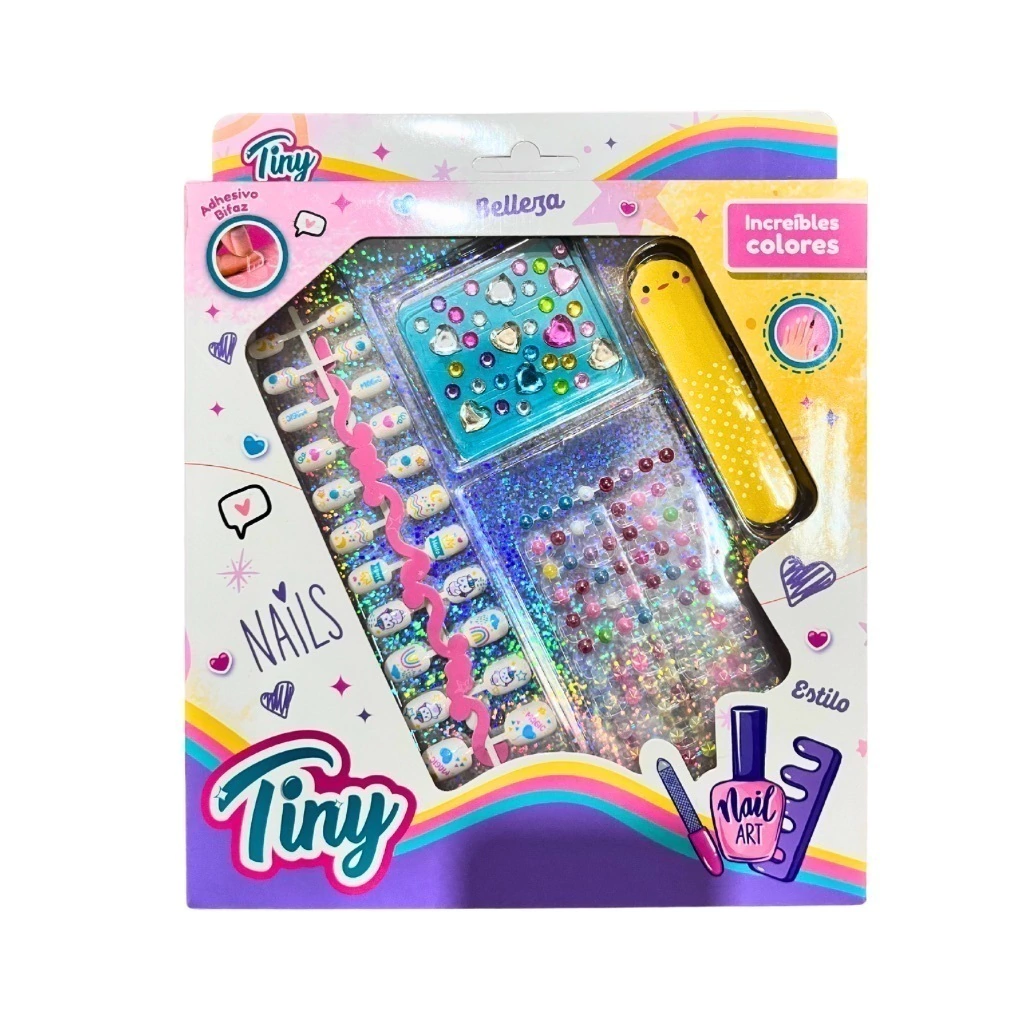 Set de uñas postizas con divertidos diseños y gemas adhesivas, incluye una lima de uñas!