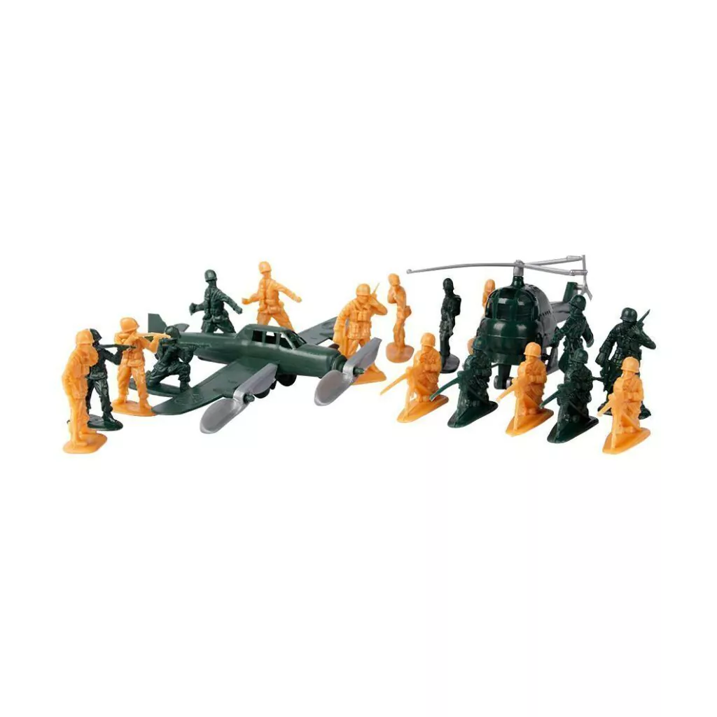 Set Soldados por 48 Piezas con vehículo. Surtidos (sujeto a disponibilidad de insumos): Avión + Jeep o gomón. ¡Divertite con este clásico juguete y arma tu batallón !