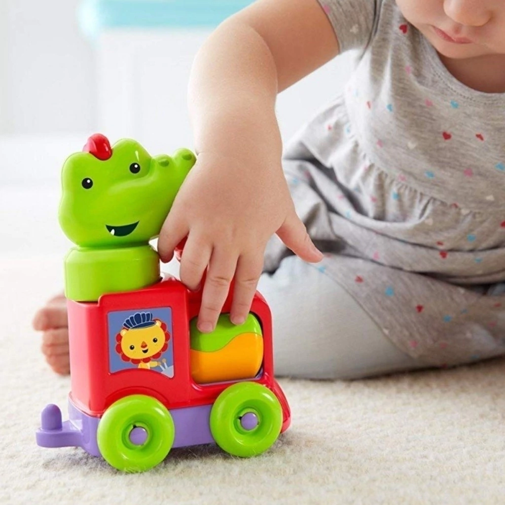 ¡Todos a bordo en un tren con montones de diversión! Estos adorables amiguitos son del tamaño ideal para que tu pequeño los sostengan y pongan en cada uno de los vagones. ¡Tu bebé podrá jugar con un vagón solo o conectarlos todos para más diversión! Los detalles como la abeja que se desliza, la barra y el elemento para hacer clic ayudan a desarrollar las habilidades motoras finas.